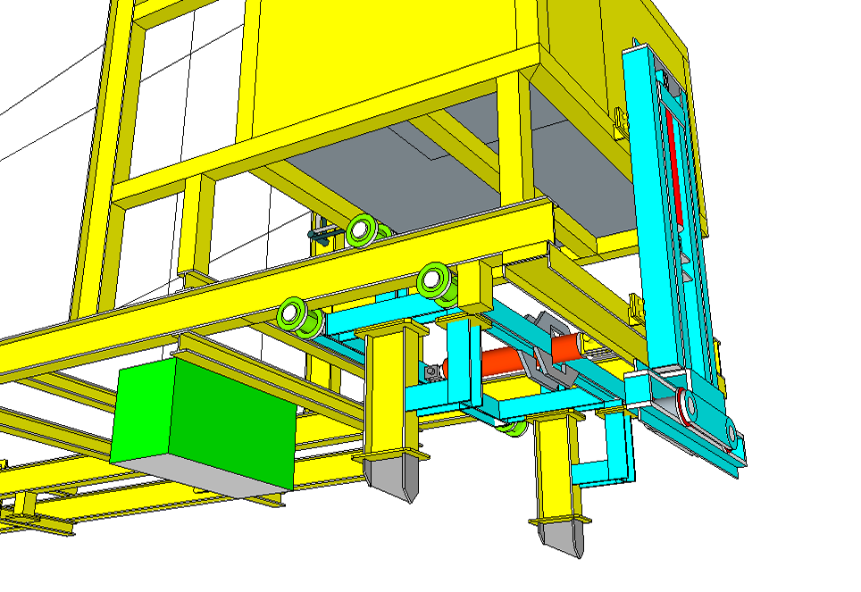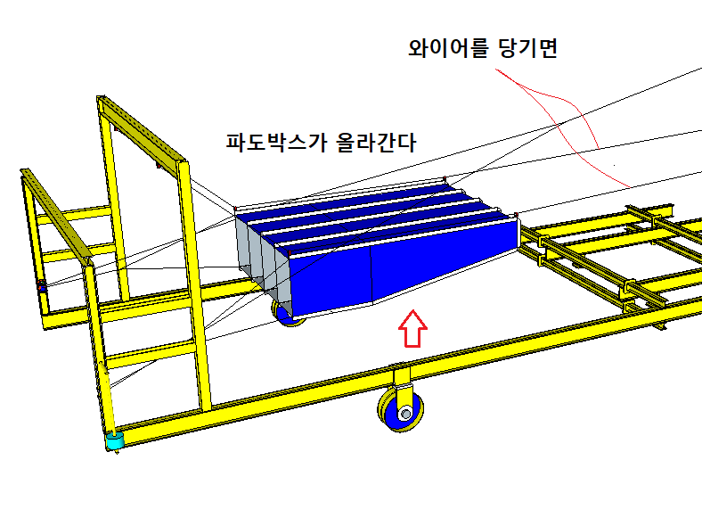 ※태풍 발생 시 2차 최종 회피기동 : 상·하 유압실린더로 본체를 들어준 뒤, 수평이동 로울러의 위치를 변경 시킨다 이후 상·하 실린더를 하강시킨 후 “수평 로울러” 로 반복적으로 전진 또는 후진 작동을 하게 된다. ( 후방 수 십미터 이상 이동 )