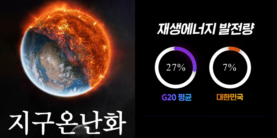 대한민국은 G20 평균에 훨씬 못 미치는 재생 전력 발전 비율 을 가지고 있다.
